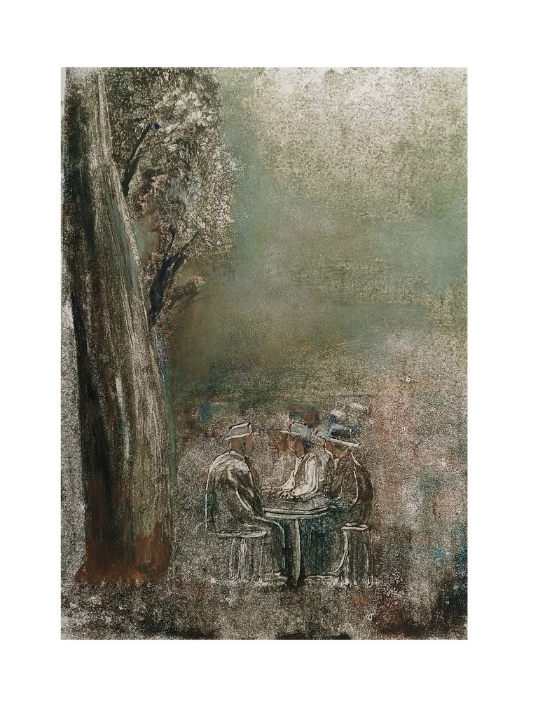 Entre empreinte unique (monotype) — chaque image est une première et une dernière fois — et tirages limités (linogravure), ces techniques laissent toute leur place au dialogue entre geste, support et pression.